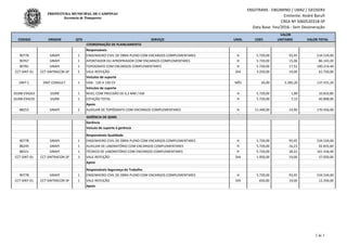 Este documento apresenta o orçamento detalhado para um projeto de engenharia civil com duração de 36 meses. Ele lista os custos com pessoal, equipamentos, veículos, materiais e serviços necessários para as atividades de gerência, produção, planejamento, qualidade, segurança e meio ambiente. O documento fornece detalhes como cargos, quantidades, valores unitários e valores totais para cada item.
