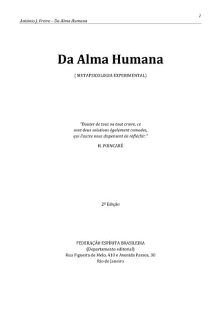 2) Apresenta as opiniões de cientistas sobre as capacidades supranormais da alma humana, como a dissociação do duplo humano.