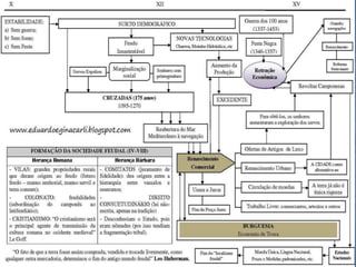 2) Também aborda o surgimento das cidades e da burguesia com o comércio, assim como os impostos cobrados pelos senhores feudais.