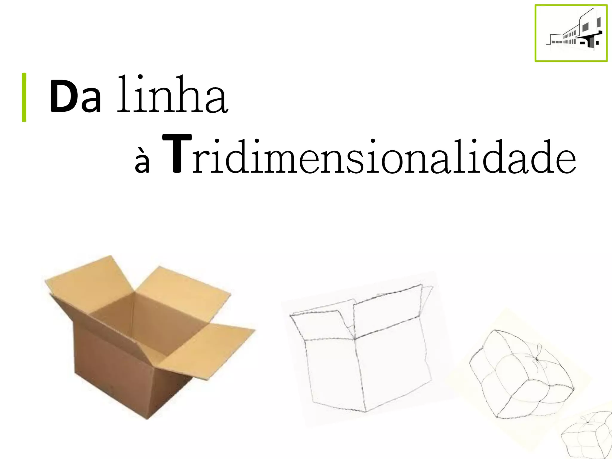 O documento discute a transformação da linha bidimensional em representações tridimensionais. Ele explica como a simplificação por nivelamento envolve representar objetos eliminando detalhes não essenciais até chegar a uma forma simplificada. Também discute a simplificação por acentuação, que intensifica diferenças para dar volume a objetos bidimensionais. A criatividade de artistas como Picasso é citada como exemplo de misturar essas estratégias.