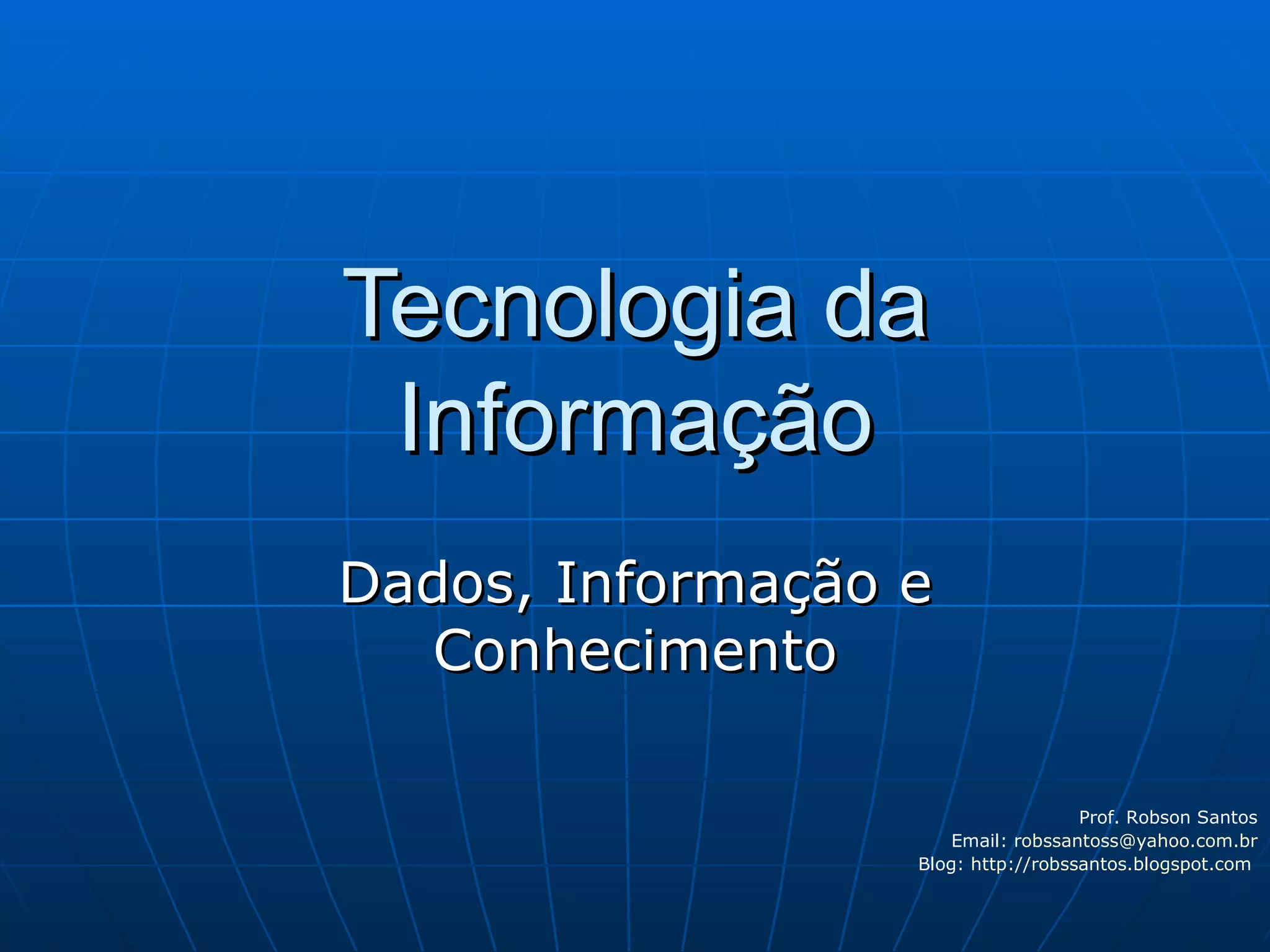 O documento discute a diferença entre dados, informações e conhecimento. Dados são símbolos ou números brutos, enquanto informações são dados organizados de forma significativa para tomada de decisões. Conhecimento se refere a modelos mentais e referenciais teóricos construídos a partir de informações.