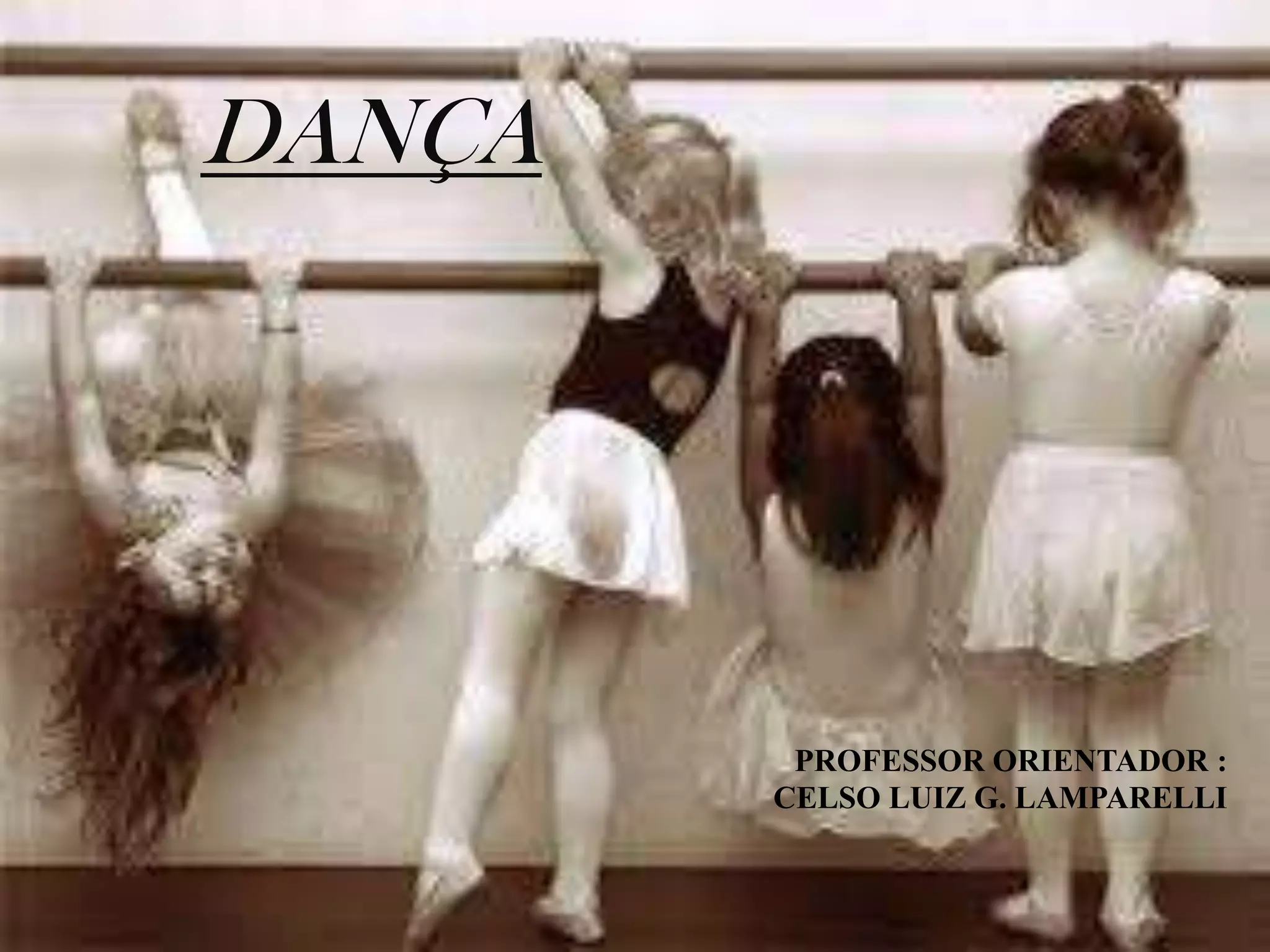 O documento discute a história da dança desde os tempos primitivos, quando era usada para rituais e comunicação, até os dias atuais. Também descreve como a dança contribui para o desenvolvimento cognitivo e motor das pessoas, além de promover sociabilidade. Por fim, apresenta a Escola Municipal de Bailado de Ourinhos, que oferece cursos de dança gratuitamente para 400 alunos e celebra 50 anos da dança na cidade em 2013.