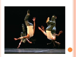 O documento discute a dança de rua, originada nos Estados Unidos durante a Grande Depressão quando dançarinos desempregados se apresentavam nas ruas. Ritmos afro-americanos como blues, soul e funk influenciaram seu desenvolvimento ao longo das décadas seguintes. A dança de rua esteve associada à cultura e identidade negras e deu origem ao movimento hip-hop nos guetos de Nova York na década de 1970.