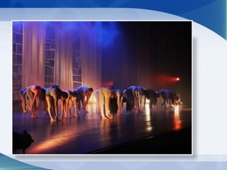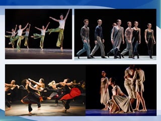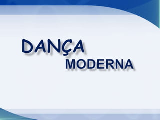 A dança moderna surgiu no início do século XX com pioneiros como Isadora Duncan e Loie Fuller procurando novas formas de expressão através da dança. Os movimentos da dança moderna são mais livres que no balé, mas ainda respeitam uma técnica, enfatizando contrações do tronco, quedas e giros em vez de passos clássicos. As aulas geralmente ocorrem sem música para não limitar os movimentos ao ritmo.