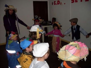 As danças de roda em sete são uma tradição cultural da região de Castro, com fotos ilustrando o projeto de preservação das tradições locais.