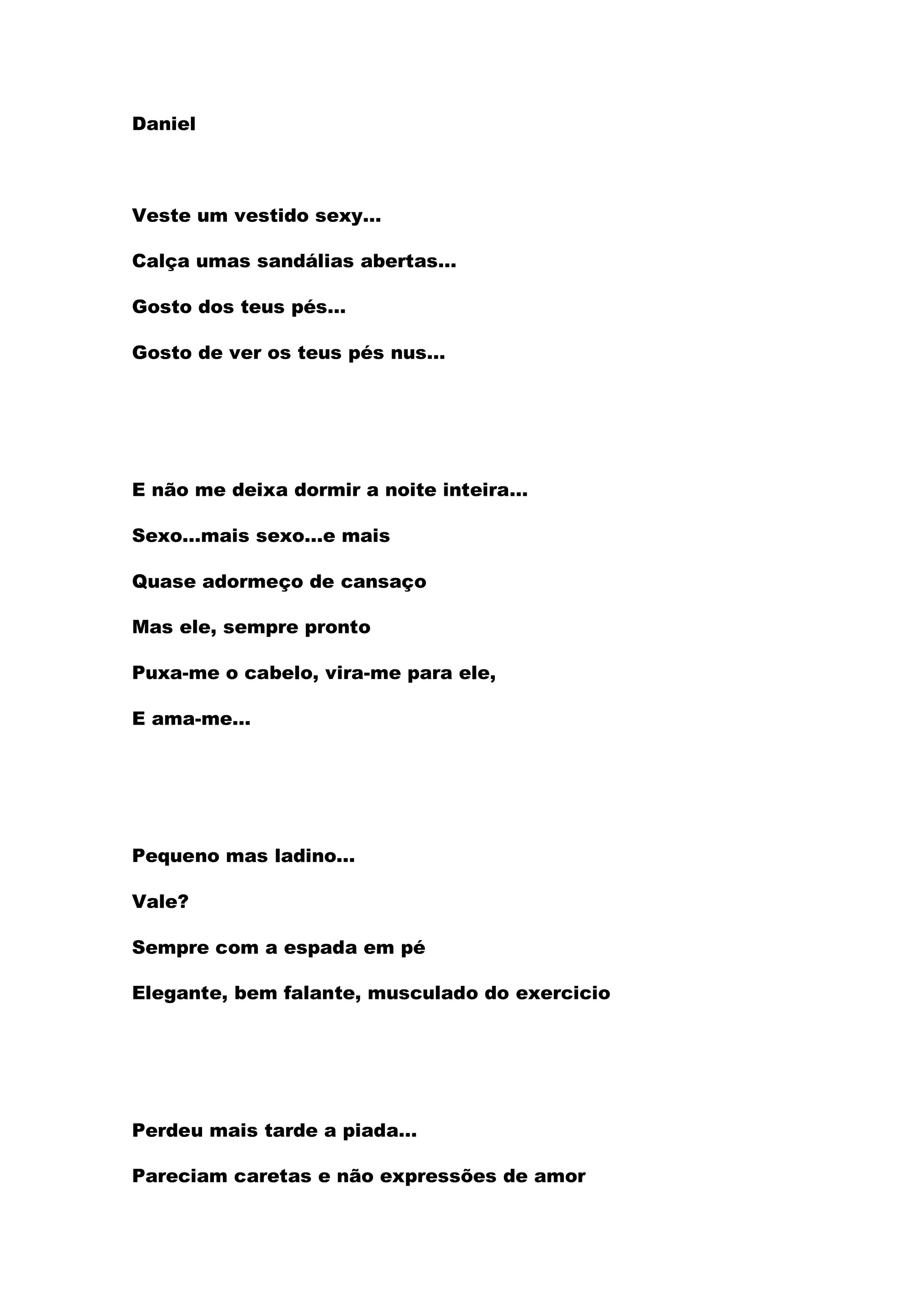 O documento descreve uma relação sexual entre duas pessoas, referindo-se a atos sexuais e desejos íntimos. A relação parece ter começado apaixonadamente, mas depois esfriou, levando uma das pessoas a afastar-se.