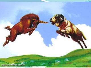 Este documento discute o capítulo 8 de Daniel e como ele explica a visão do capítulo 7. Ele analisa os símbolos do carneiro, do bode e do chifre pequeno, identificando-os como impérios históricos e como prenunciam o julgamento final e a purificação do santuário. O documento também discute a purificação no contexto do Dia da Expiação e como a profecia aponta para a recriação e um novo mundo após o julgamento de Deus.