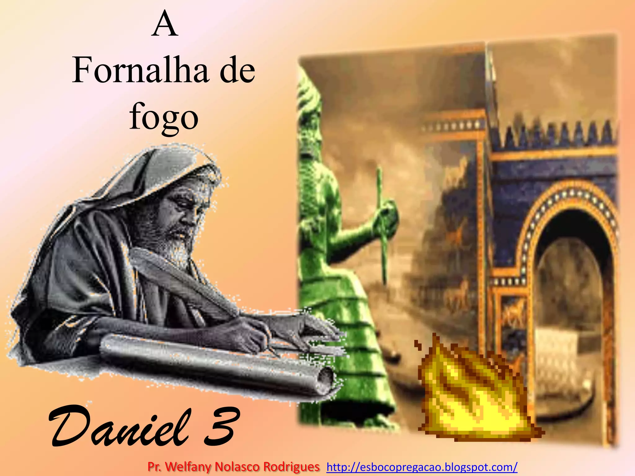Nabucodonosor construiu uma estátua de ouro e ordenou que todos se prostrassem diante dela ao som de música. Três judeus recusaram-se a adorar a estátua e foram lançados na fornalha de fogo, mas sobreviveram ilesos com a proteção de um quarto homem enviado por Deus. Nabucodonosor louvou o Deus dos judeus após ver o milagre.
