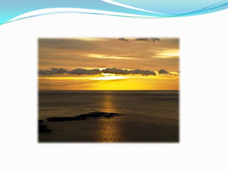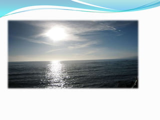 O documento descreve o Oceano Pacífico como a maior massa marítima do globo, abrangendo quase um terço da superfície da Terra, e menciona alguns de seus habitantes como peixes-balão e peixes-palhaços, assim como a poluição marítima que ameaça o oceano e sua vida.