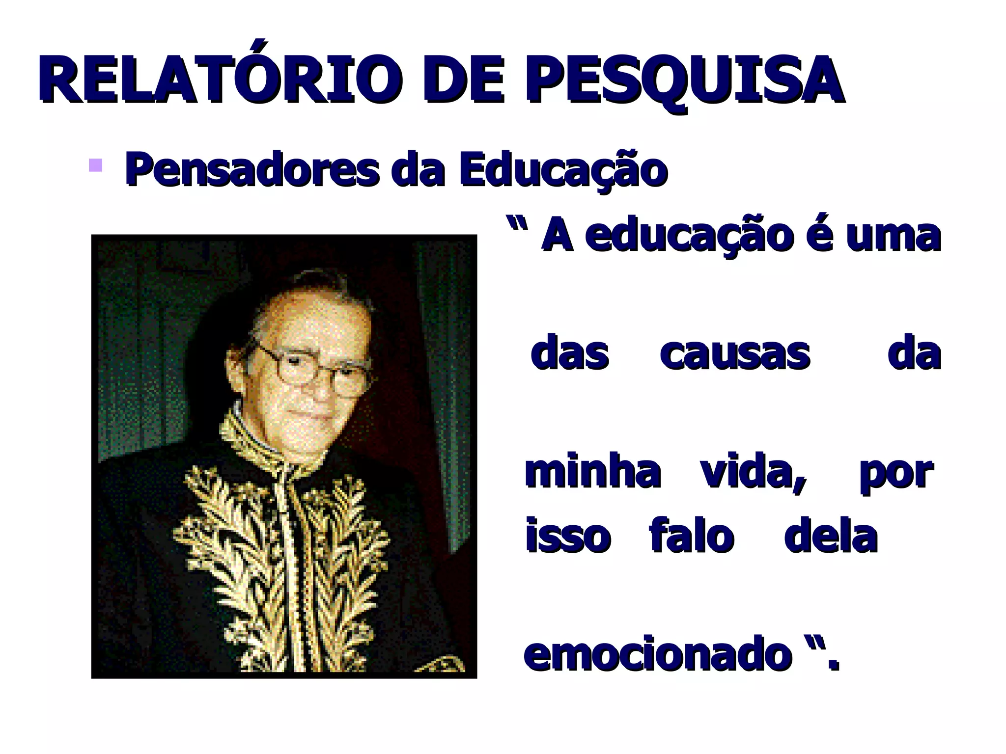 Darcy Ribeiro dedicou sua vida à educação e aos direitos indígenas no Brasil. Nasceu em Minas Gerais e estudou sociologia e etnologia, defendendo os direitos dos índios. Foi exilado durante a ditadura militar e voltou a se dedicar à educação pública de qualidade, criando escolas integrais. Era um crítico do atraso educacional brasileiro e da elite conservadora.