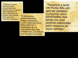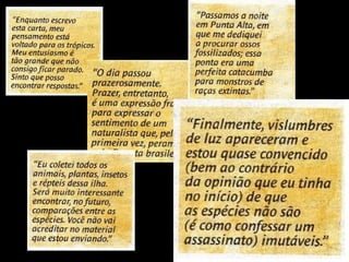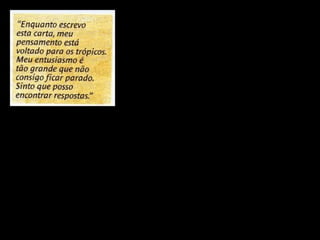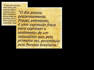 Charles Darwin nasceu em 1809 na Inglaterra e viajou pelo mundo coletando amostras de plantas e animais. Sua teoria da evolução por seleção natural, publicada em 1859 no livro A Origem das Espécies, propôs que as espécies evoluem ao longo do tempo através da seleção natural dos organismos mais aptos em cada geração. Embora revolucionária, sua teoria não explicava as causas iniciais da variação entre os organismos.