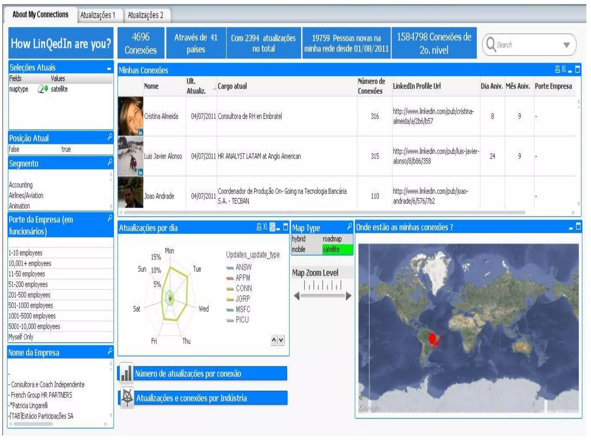 Exemplo de Dashboard feito em QlikView conectando com o Linkedin.