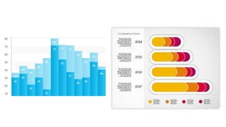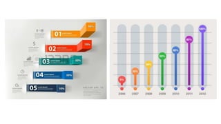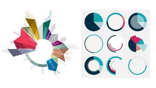 Este documento apresenta os principais tipos de gráficos para visualização de dados, incluindo gráficos de pizza, barras e colunas, bolhas e linhas/área, com o objetivo de ilustrar dados de forma focada e eficiente.