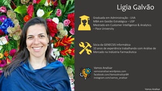 O documento discute conceitos e dicas de visualização de dados. Ele fornece três etapas para análise de dados, destaca a importância do foco no público, da simplicidade e do pensamento interdisciplinar na visualização de dados e apresenta dicas para simplificar gráficos e dashboards.