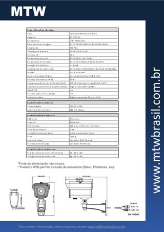 A câmera MTW VM0114 permite captação de imagens em condições de pouca iluminação com alcance de 40m, possui proteção IP66 contra poeira e água, e lente fixa de 3.6, 4 ou 6mm que fornecem imagens nítidas.