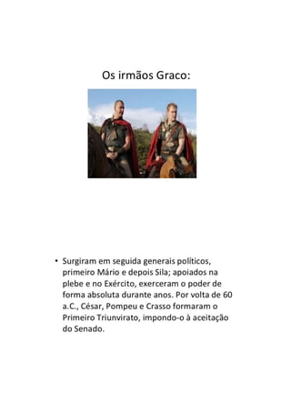 Pompeu, Crasso e Júlio César. Esses generais iniciaram uma grande disputa pelo poder, até que,