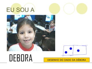 Este documento apresenta informações pessoais sobre uma menina chamada Débora da Silva Cordeiro. Ela descreve sua aparência física, sua família, preferências como cor, time de futebol e animais, além de atividades de lazer como assistir TV e comidas preferidas.