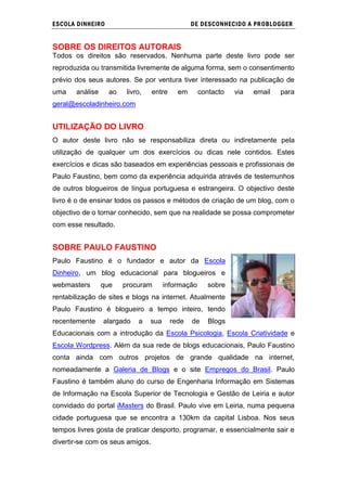 O documento fornece orientações sobre como criar um blog de sucesso, desde definir objetivos e público-alvo até estratégias de conteúdo e marketing. Enfatiza a importância de começar com um plano claro sobre onde se quer chegar no futuro para guiar as escolhas do blogueiro.