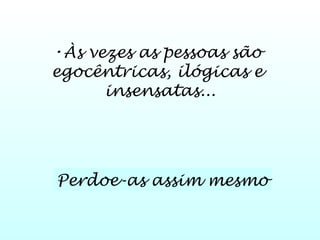 O documento fornece conselhos sobre como lidar com as dificuldades da vida e as críticas dos outros, enfatizando a importância de continuar sendo gentil, honesto, construtivo e feliz, e dar o melhor de si, independentemente da recepção ou reconhecimento externos. A mensagem central é para manter a fé em Deus e não se preocupar com a opinião dos outros.