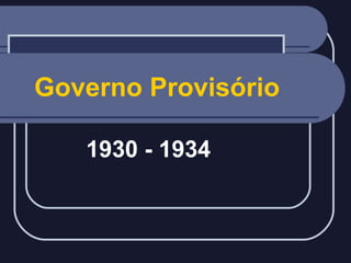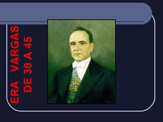 O documento descreve o período da Era Vargas no Brasil de 1930 a 1945, começando pelo Governo Provisório após a Revolução de 1930 e a ascensão de Getúlio Vargas ao poder. Detalha as características do Governo Constitucional de 1934 a 1937 e a instauração do Estado Novo em 1937, com a concentração de poderes no Executivo. Apresenta as medidas econômicas, sociais e políticas implementadas durante os diferentes governos deste período turbulento e autoritário no Brasil.