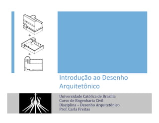 O documento apresenta os princípios gerais do desenho arquitetônico, incluindo equipamentos, tipos de papel, normas, escalas e etapas. Detalha os materiais usados como régua, compasso e papel, além de normas técnicas e boas práticas para garantir a qualidade e precisão dos desenhos.