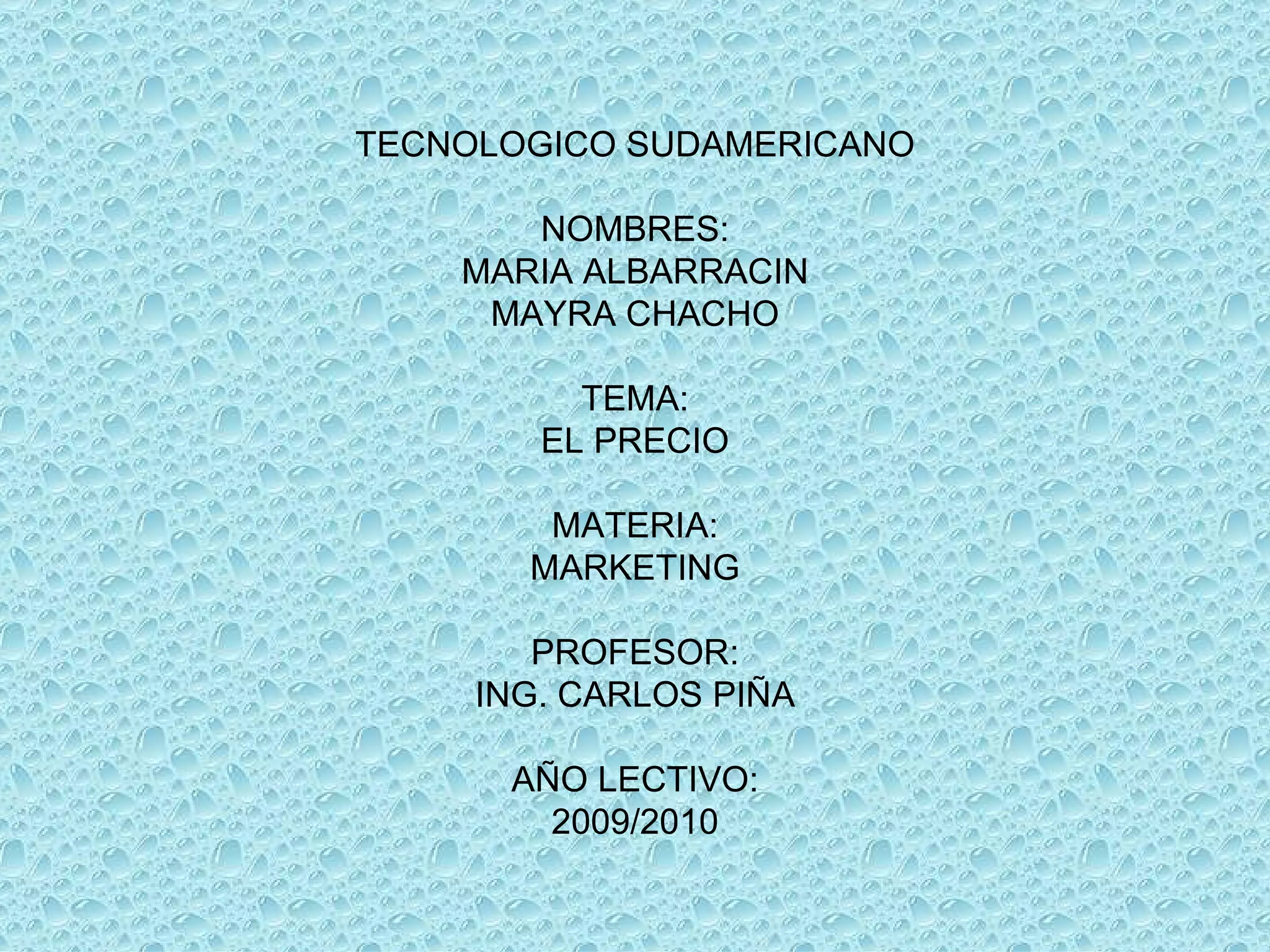El documento trata sobre los conceptos de precio en el mercado y en derecho. Explica que el precio de mercado se establece por la oferta y la demanda y depende de la cantidad de bienes disponibles. También discute los sistemas de precios fijos versus precios flexibles y cómo los precios tienden a seguir su propia lógica a pesar de controles gubernamentales.
