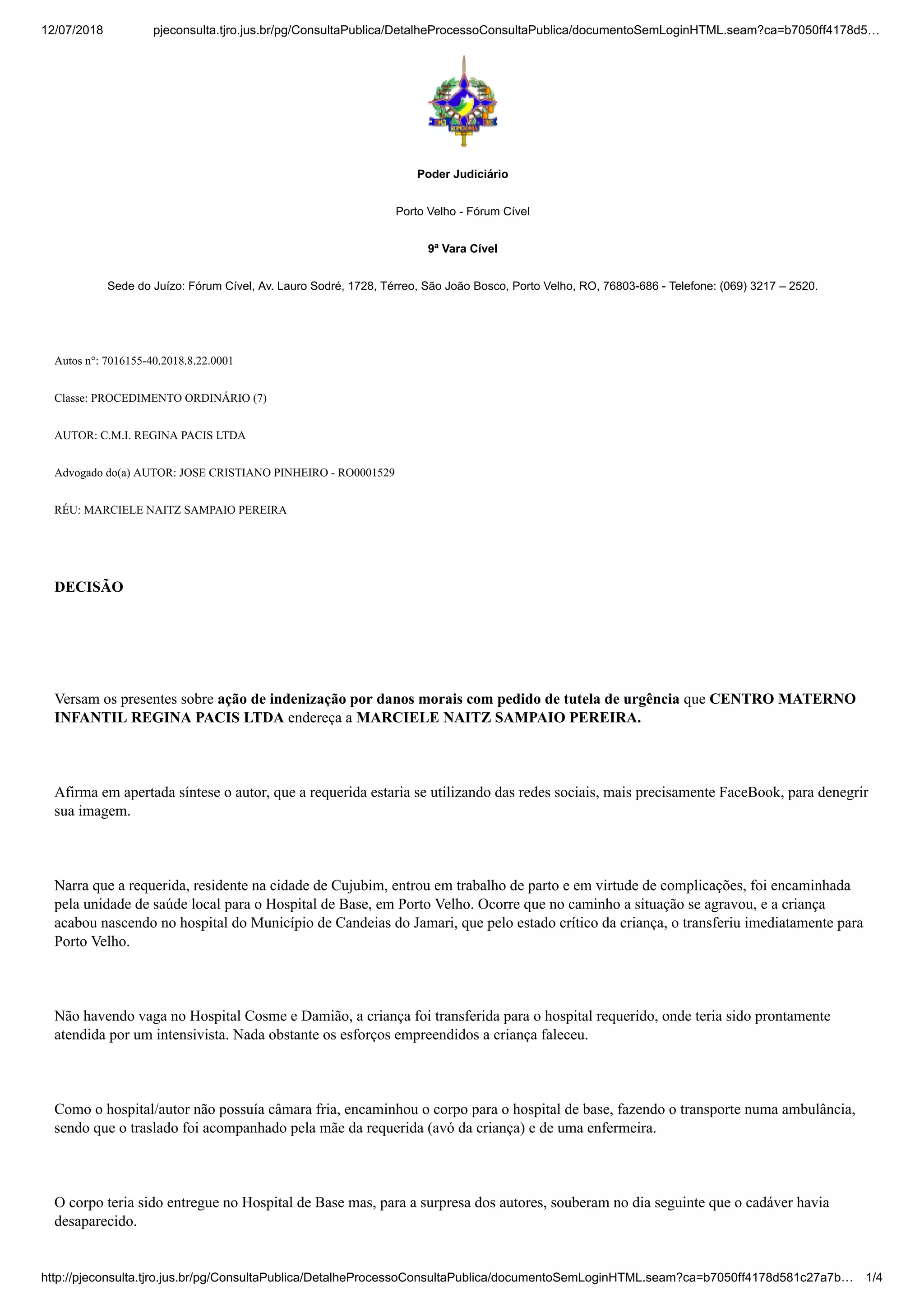 O autor moveu ação contra a requerida alegando que ela o difamou em rede social. O juiz concedeu liminar para que a requerida excluísse as postagens e se abstivesse de novas publicações, sob pena de multa, considerando que a liberdade de expressão não pode abusar dos direitos de honra e imagem de outrem.