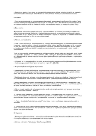O Diretório Municipal do Partido Socialista Brasileiro representou contra Ethymos Comunicação em Informática Ltda e Thea Marival Tavares alegando propaganda eleitoral antecipada negativa contra Luciano Ducci. A juíza julgou improcedente a representação, concluindo que as críticas feitas ao prefeito não caracterizavam propaganda eleitoral, mas sim exercício do direito de crítica política.