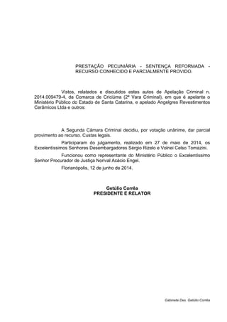 O documento trata de um recurso de apelação criminal sobre um caso de crime de poluição ambiental. Foi absolvido na sentença de primeiro grau por falta de provas, mas o Ministério Público recorreu alegando que as provas dos autos, como relatório da polícia ambiental, são suficientes para comprovar a materialidade do crime sem necessidade de laudo técnico. O relator entende que a apelação deve ser parcialmente provida, uma vez que a jurisprudência considera que relatórios policiais ambientais podem comprovar o crime,