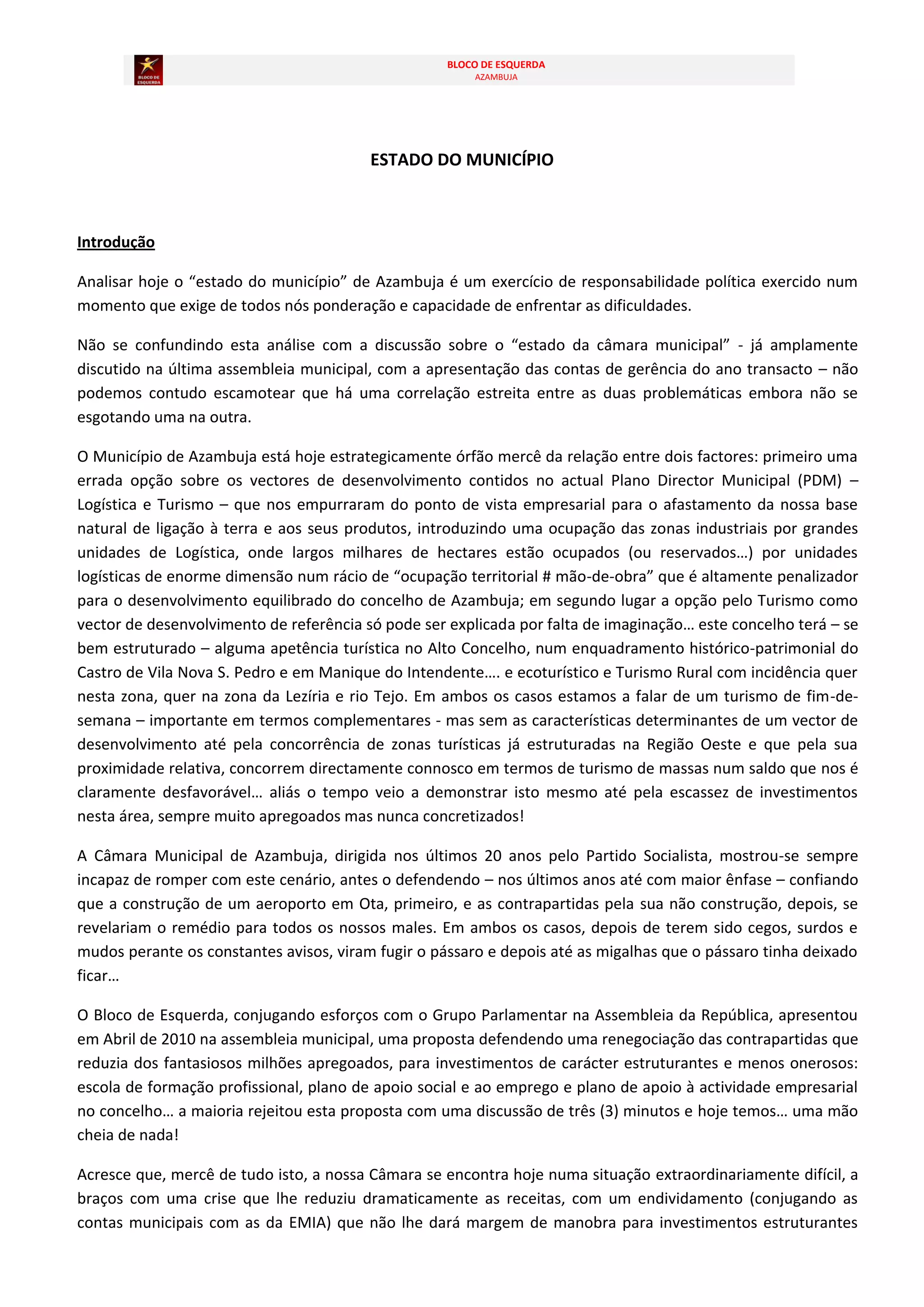 1) O documento analisa o estado atual do município de Azambuja e propõe um plano estratégico com quatro zonas de desenvolvimento diferenciado.