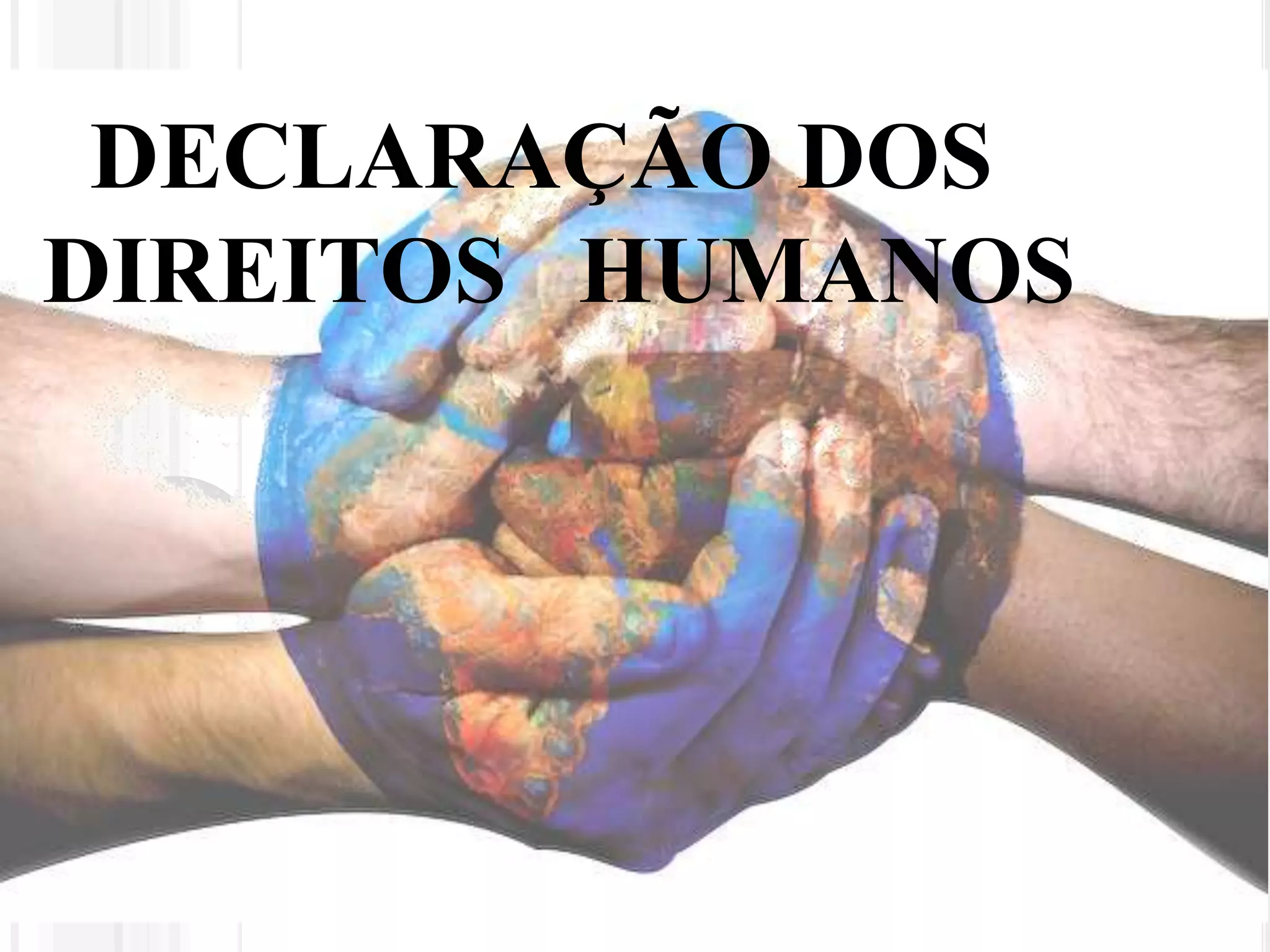 Este documento apresenta os direitos humanos fundamentais, incluindo o direito à vida, liberdade, propriedade, opinião e educação. Proíbe a escravidão e tortura. Garante a igualdade de direitos e dignidade entre todos os seres humanos.