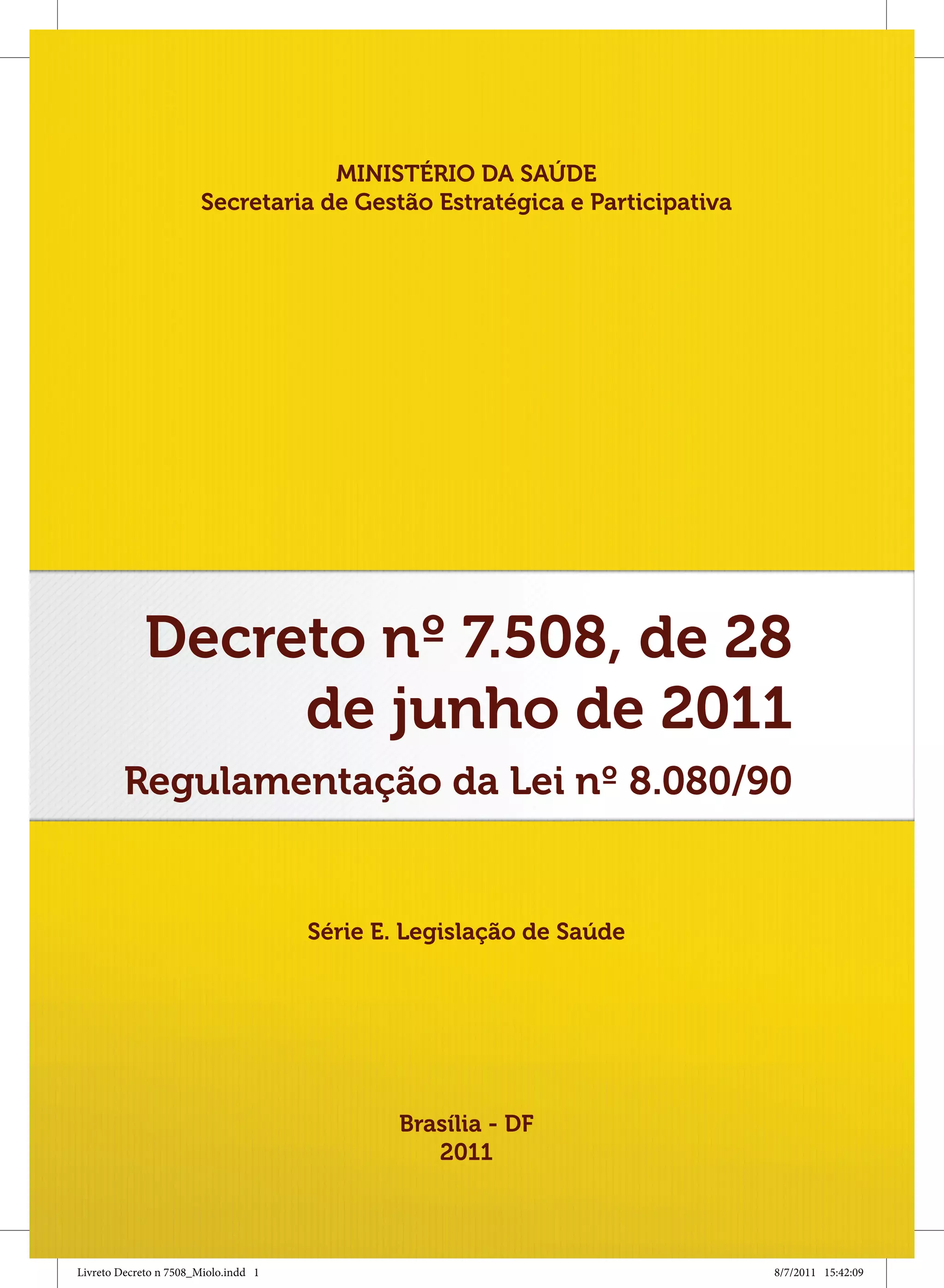 O documento regulamenta a Lei no 8.080/90 que estabelece as diretrizes para a organização do Sistema Único de Saúde brasileiro (SUS). O decreto define termos como Região de Saúde e Rede de Atenção à Saúde, estabelece diretrizes para a organização regionalizada e hierarquizada do SUS e trata da articulação interfederativa para a gestão compartilhada do sistema.