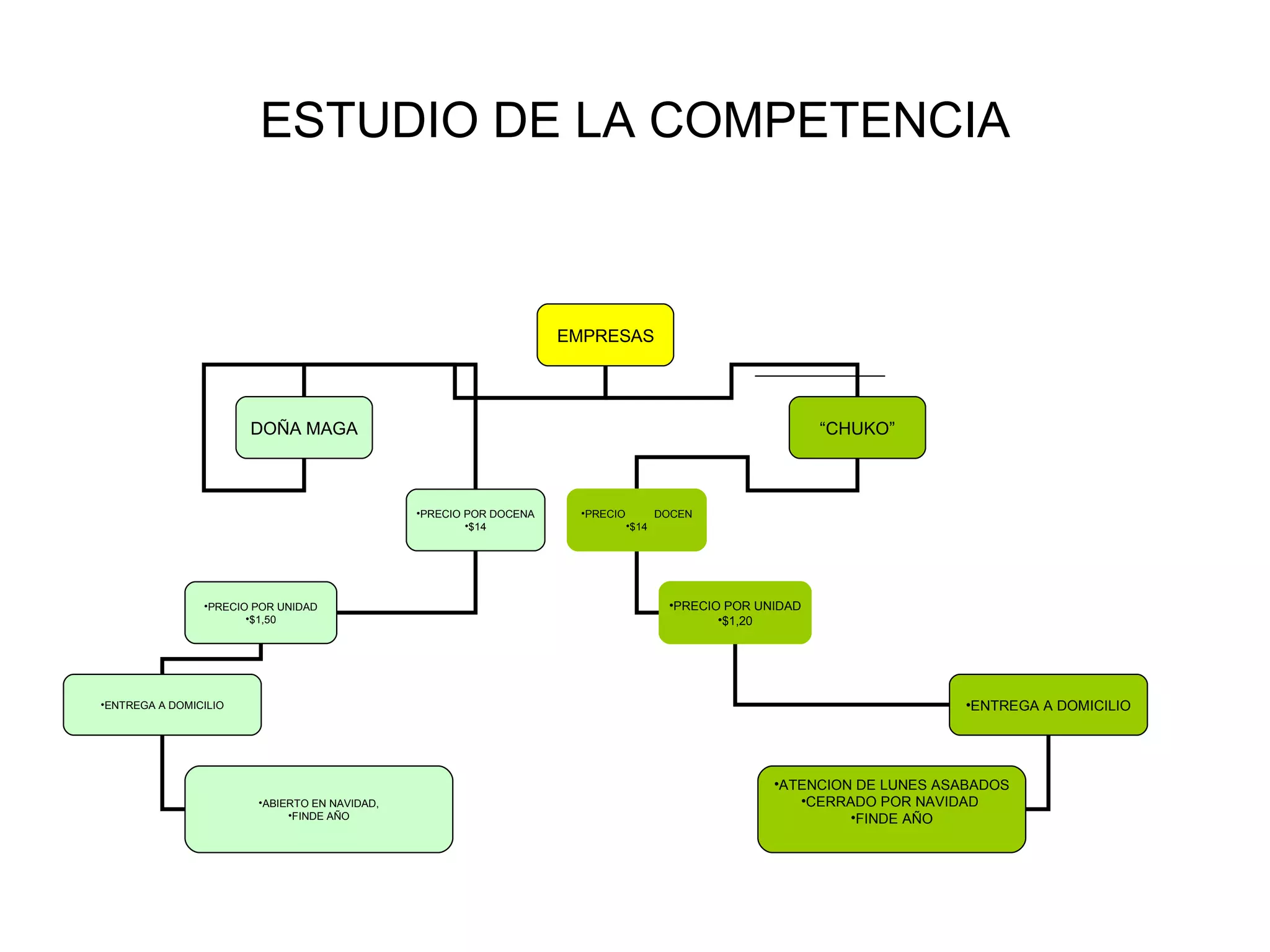 A empresa Doña Maga vende docenas de empanadas por $14 e unidades individuais por $1,50, entregando em domicílio. Em datas festivas como Natal e Ano Novo, as docenas custam $14 e as unidades $1,20, também com entrega em domicílio, com atendimento de segunda a sábado e fechado nos feriados.