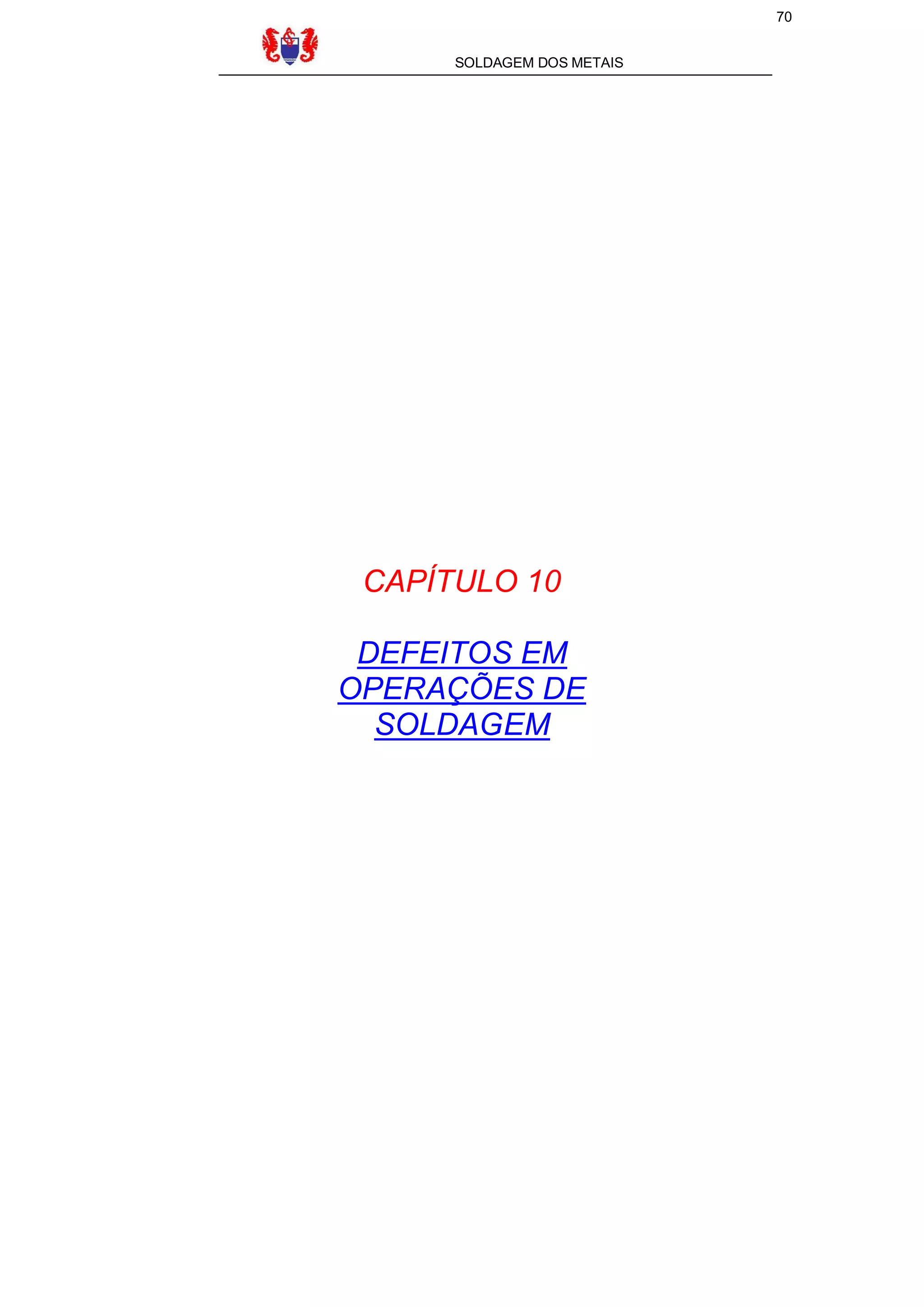 O documento descreve vários tipos de defeitos comuns encontrados em soldagens, como porosidade, inclusões de escória, falta de penetração e trincas. Ele também fornece critérios de aceitação para esses defeitos de acordo com padrões como ASME, ANSI e API, definindo limites máximos para tamanho, quantidade e área total de defeitos permitidos.