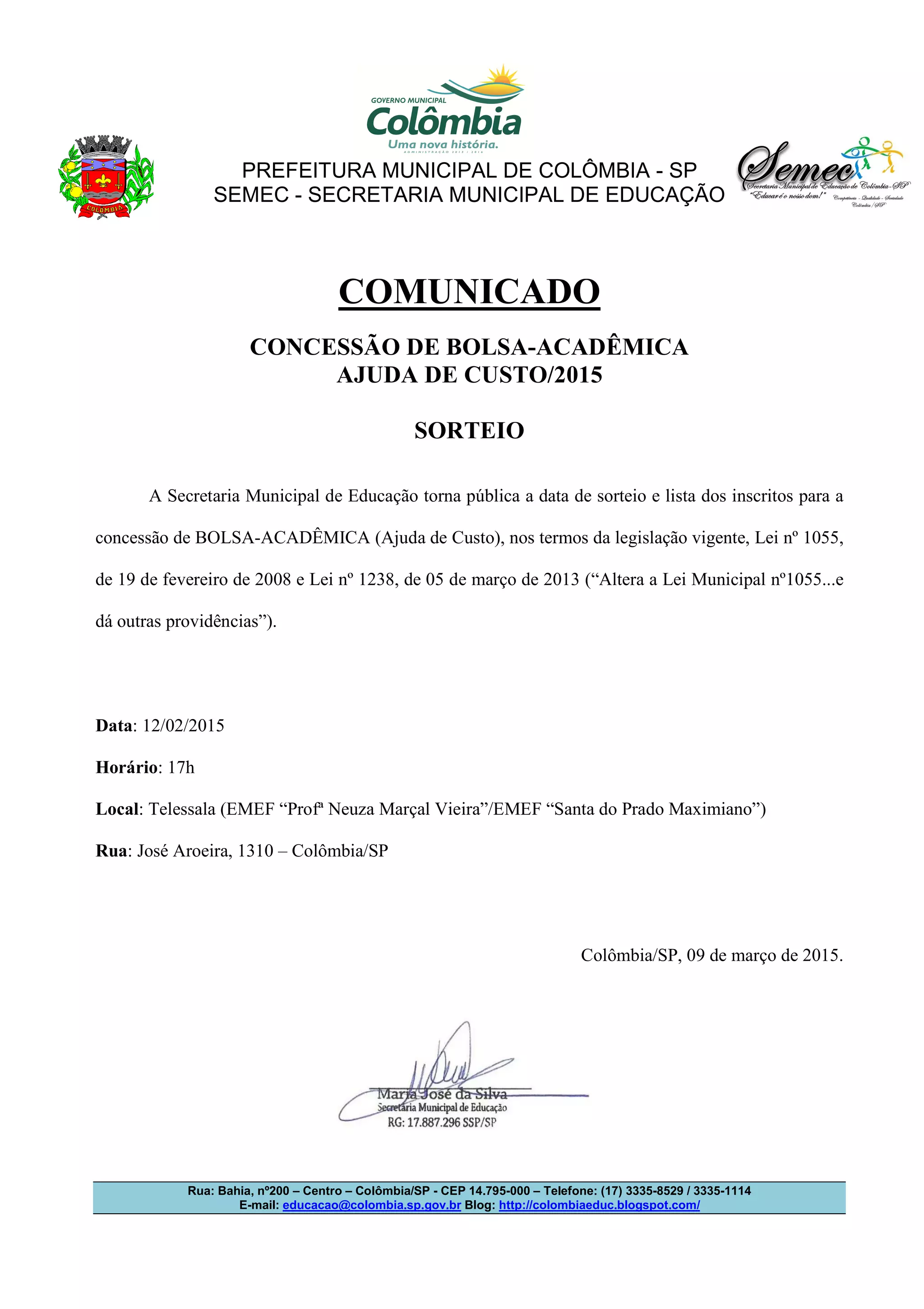 E-mail: educacao@colombia.sp.gov.br Blog: http://colombiaeduc.blogspot.com/