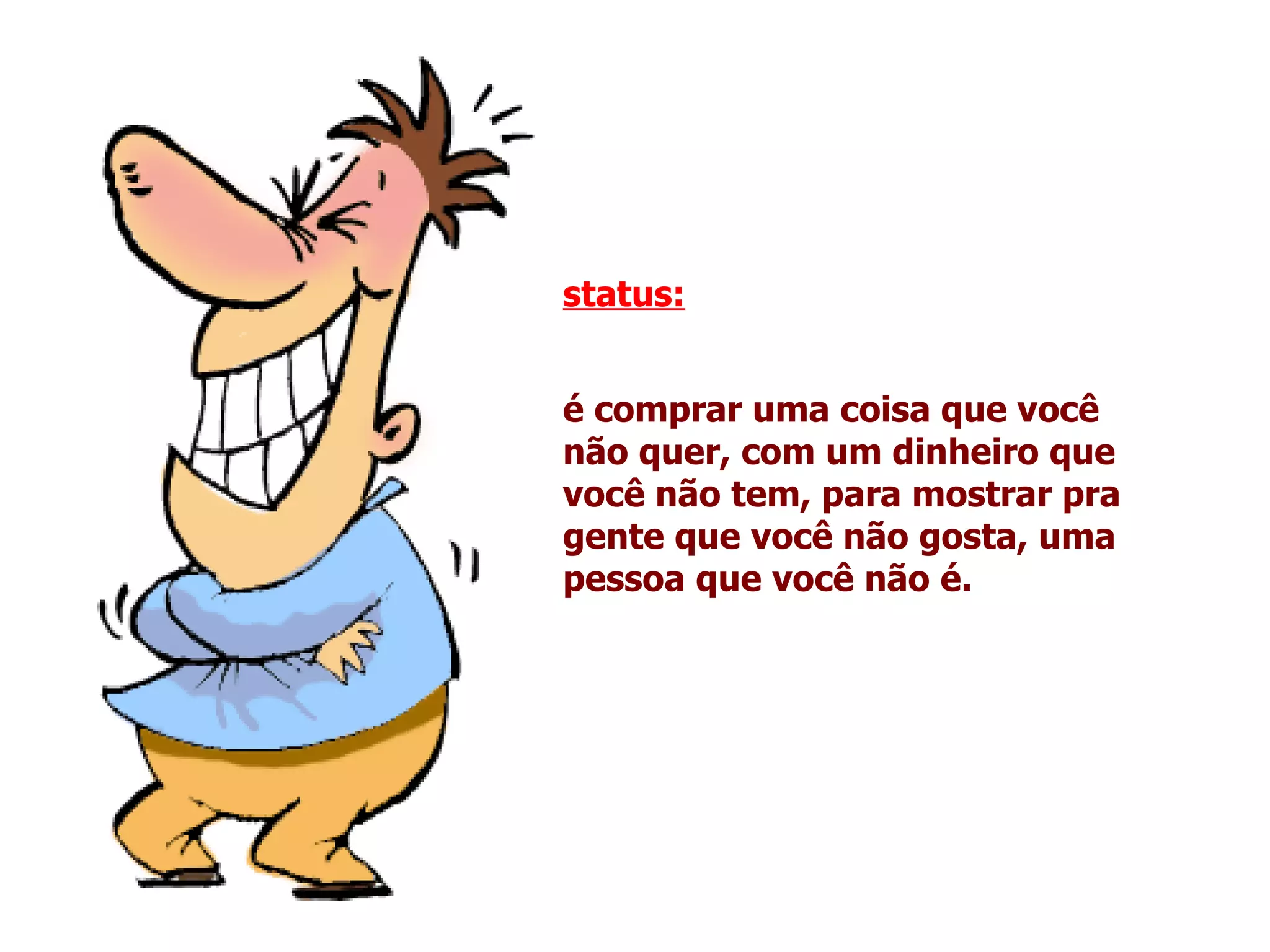status: é comprar uma coisa que você não quer, com um dinheiro que você não tem, para mostrar pra gente que você não gosta, uma pessoa que você não é.