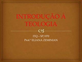 - O documento discute os conceitos de teologia, incluindo suas origens e definições. Teologia é o estudo de Deus a partir de diferentes perspectivas como filosófica, religiosa e bíblica.