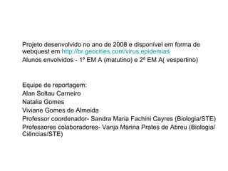 1) A epidemia de dengue em 1997 que contaminou 54.599 pessoas no estado, sendo a maioria em Campo Grande;