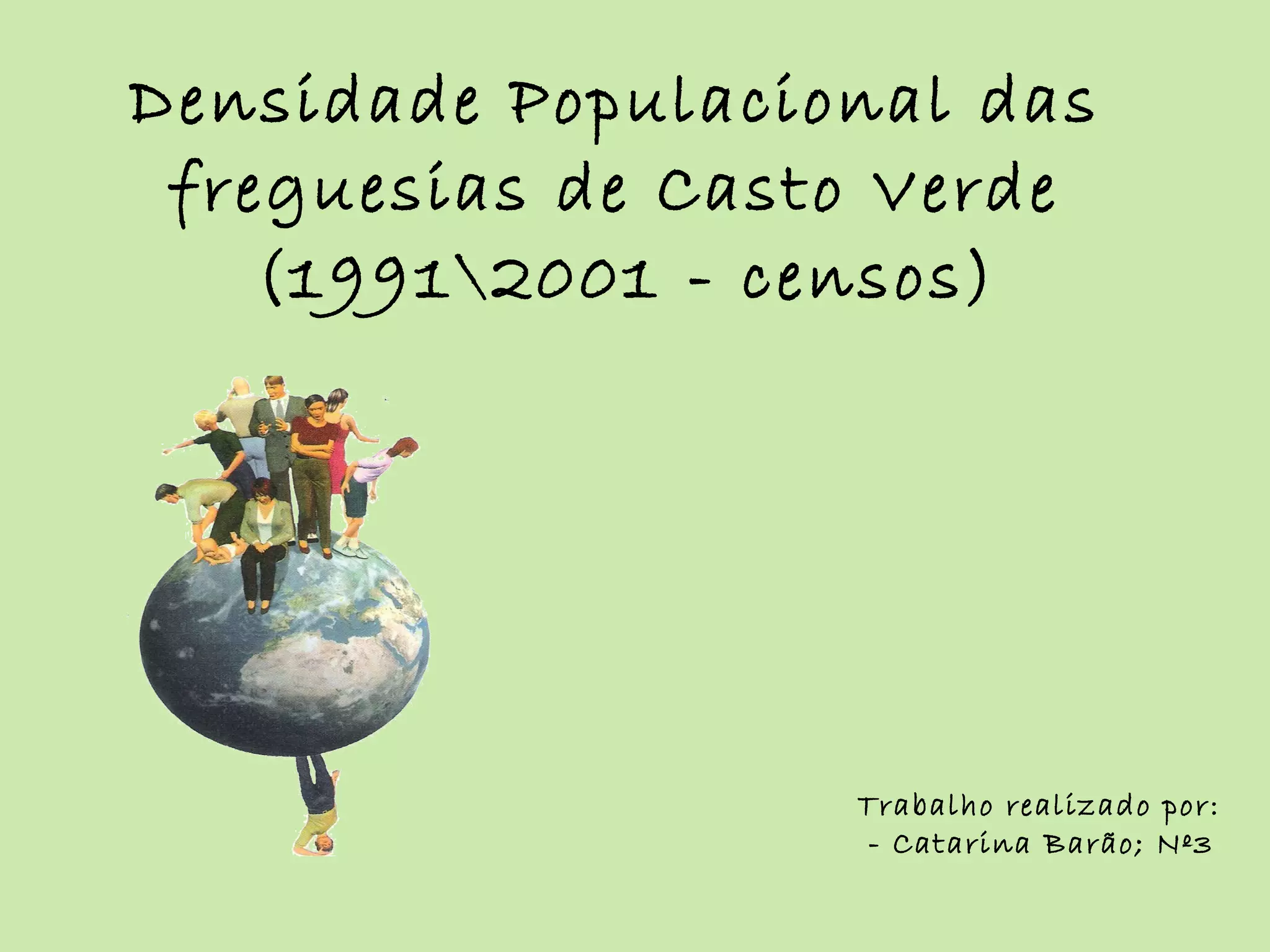 Este documento descreve a evolução da densidade populacional nas freguesias de Casto Verde entre 1991 e 2001, mostrando que Santa Bárbara de Padrões manteve a maior densidade e São Marcos da Ataboeira a menor, e que algumas freguesias viram aumentos ou diminuições na densidade populacional nesse período.