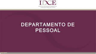 O documento discute assuntos relacionados a recursos humanos e departamento de pessoal, incluindo folha de pagamento, encargos sociais, férias e rescisão contratual. Ele explica as diferenças entre departamento de RH e departamento de pessoal, além de detalhar os principais cálculos envolvidos na folha de pagamento como salário, horas extras, adicionais e descontos.