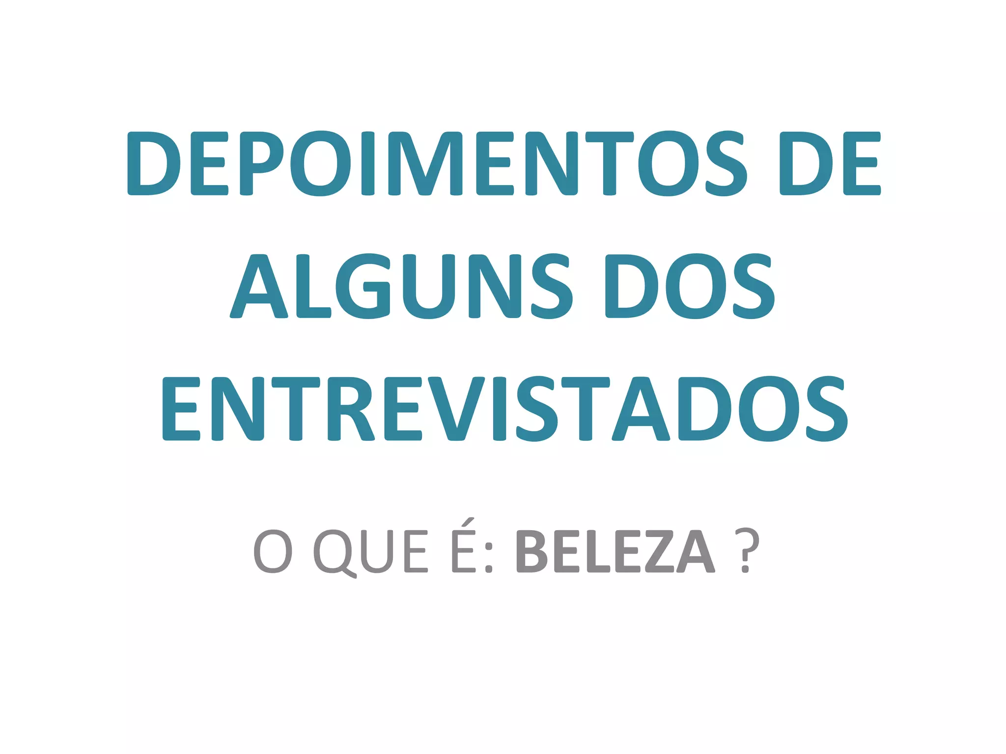 Alguns entrevistados deram suas opiniões sobre o que é beleza: sentir segurança em si mesmo, ter saúde antes da estética, e estar satisfeito consigo mesmo torna alguém belo. Outros preferem atividades físicas informais e música em vez de academia, e uma mulher disse que cirurgia plástica é essencial para se sentir jovem e bonita.