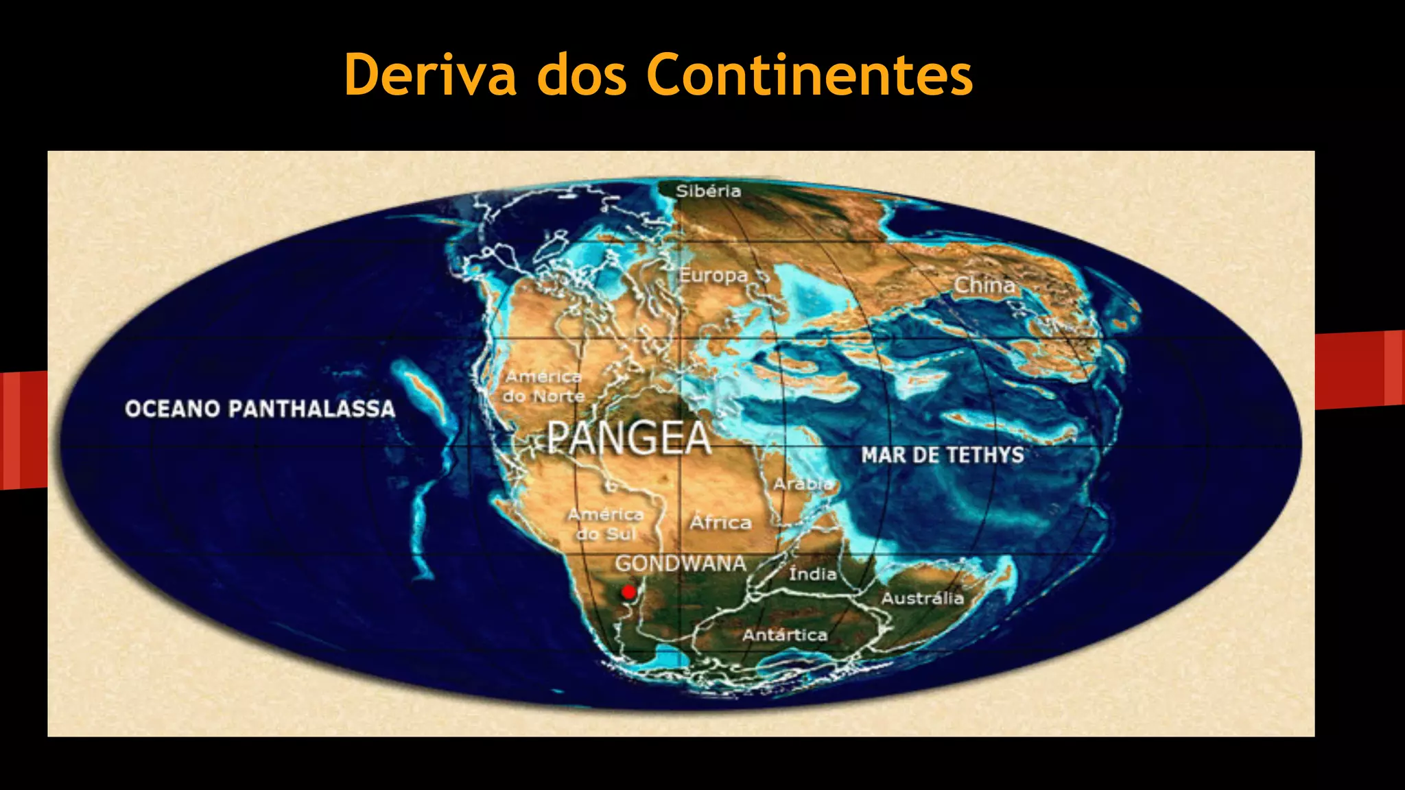 O documento descreve a Teoria da Deriva Continental proposta por Alfred Wegener em 1915, na qual ele afirmou que todos os continentes atuais estiveram unidos no supercontinente Pangeia, que se fragmentou ao longo do tempo com os continentes se movendo para suas posições atuais. Wegener fundamentou sua teoria com evidências morfológicas, paleontológicas, litológicas e paleoclimáticas. Posteriormente, a Teoria da Tectônica de Placas explicou o movimento dos continentes com base no movimento de placas litosféric