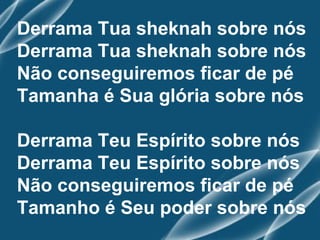 O cantor pede que Deus derrame seu Espírito Santo sobre ele e os outros, reconhecendo que sem Sua presença e poder eles não conseguirão ficar de pé.