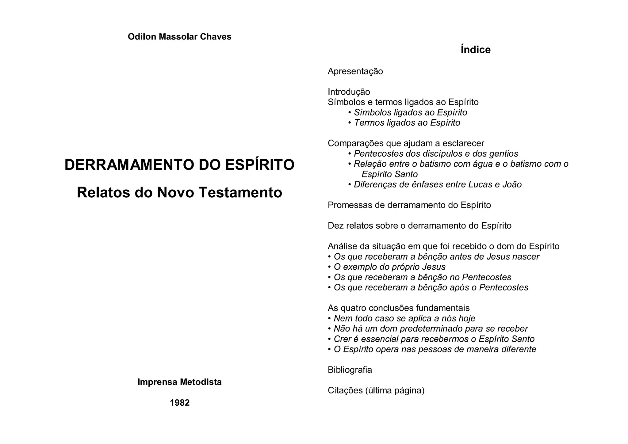 O documento resume um livro sobre o derramamento do Espírito Santo. Ele discute símbolos e termos relacionados ao Espírito, comparações que ajudam a esclarecer, promessas de derramamento do Espírito, 10 relatos bíblicos sobre o derramamento do Espírito, e quatro conclusões fundamentais sobre o assunto. O autor busca analisar objetivamente o que a Bíblia diz sobre o derramamento do Espírito, visando esclarecer questões polêmicas sobre o tema.