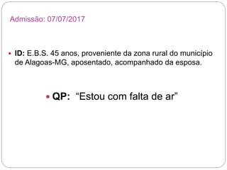 Este caso clínico descreve um paciente do sexo masculino de 45 anos que deu entrada no hospital com dispneia progressiva e edema generalizado. Exames revelaram derrame pleural volumoso e consolidação pulmonar, além de insuficiência cardíaca congestiva descompensada. A análise do líquido pleural caracterizou-o como exsudato, possivelmente decorrente de descompensação da ICC.