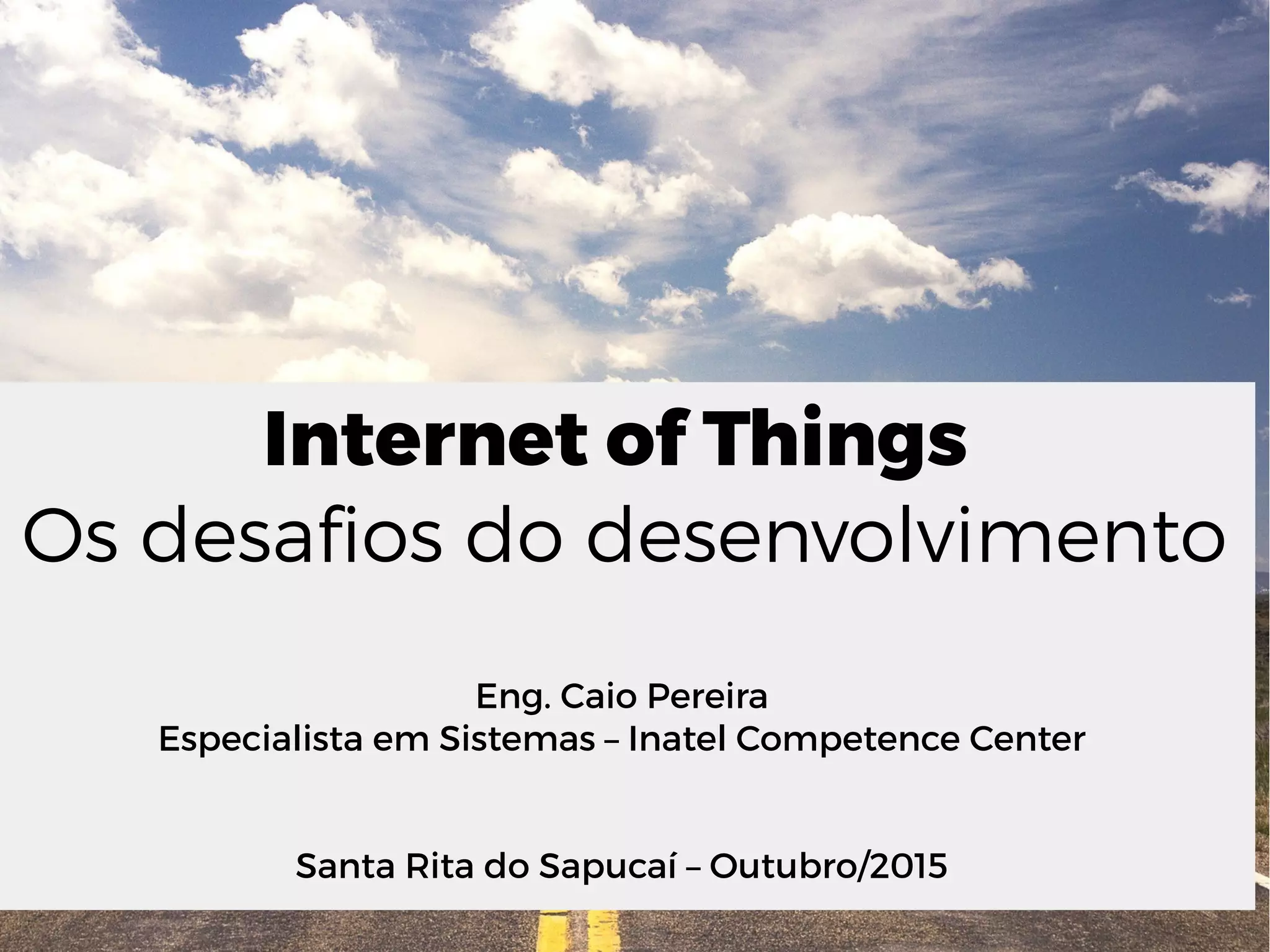 O documento discute os principais desafios do desenvolvimento da Internet das Coisas (IoT), incluindo segurança e privacidade de dados, padronização e interoperabilidade, alto custo de implementação e manutenção, necessidade de conectividade confiável e gerenciamento de grande volume de dados gerados (Big Data).
