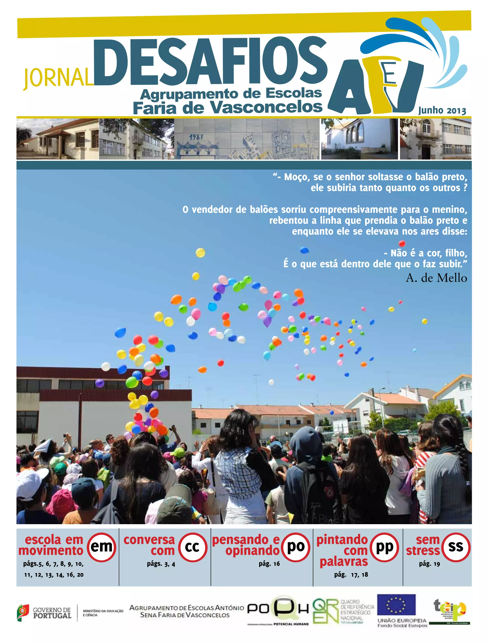Este documento resume as atividades realizadas por alunos e professores de uma escola portuguesa no mês de junho. Inclui resumos de visitas de estudo, projetos desenvolvidos em diferentes disciplinas, como interculturalidade e literatura, e eventos comemorativos, como o Dia da Criança e o Dia do Ambiente. Também relata a presença de um jornalista numa conversa com a comunidade escolar e entrevistas realizadas por alunos do Clube de Jornalismo.