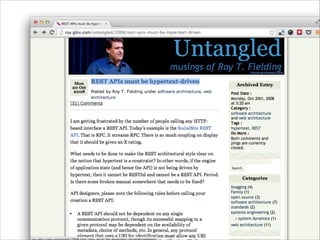 Este documento fornece uma introdução sobre APIs REST, definindo o que é REST e hipermídia, discutindo como projetar e implementar uma API REST passo a passo e mencionando algumas ferramentas e bibliotecas úteis. O documento explica como entender o fluxo de trabalho da API, construir uma máquina de estados, criar tipos de mídia e implementar a API usando exemplos de pedidos e pagamentos em uma lanchonete.