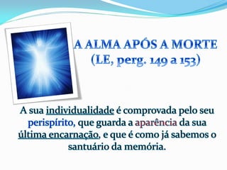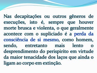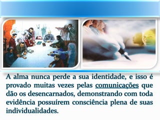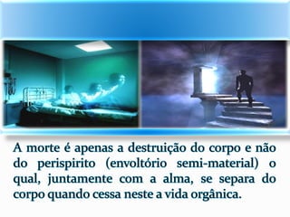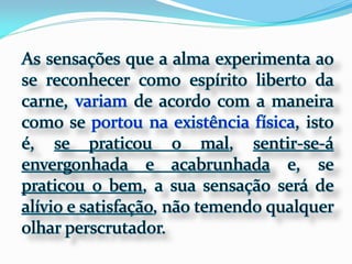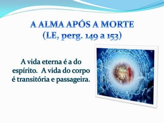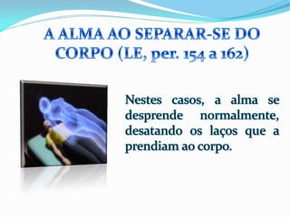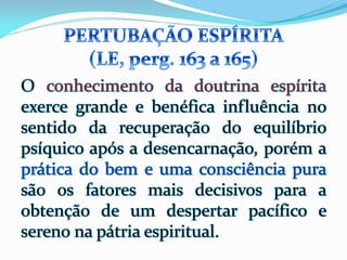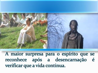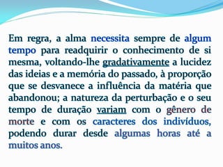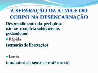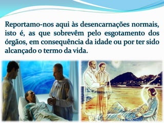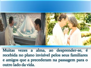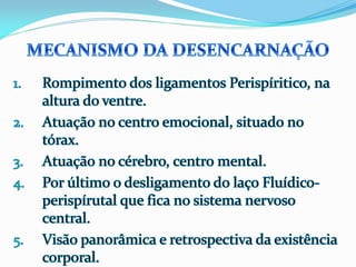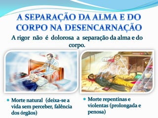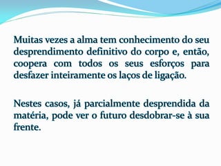 1) O documento descreve as experiências de Jacob durante o processo de desencarne após a morte física, incluindo a sensação de dois corações batendo e se sentindo dentro de uma neblina, além de ver retrospectivamente todos os seus atos e ideias.
