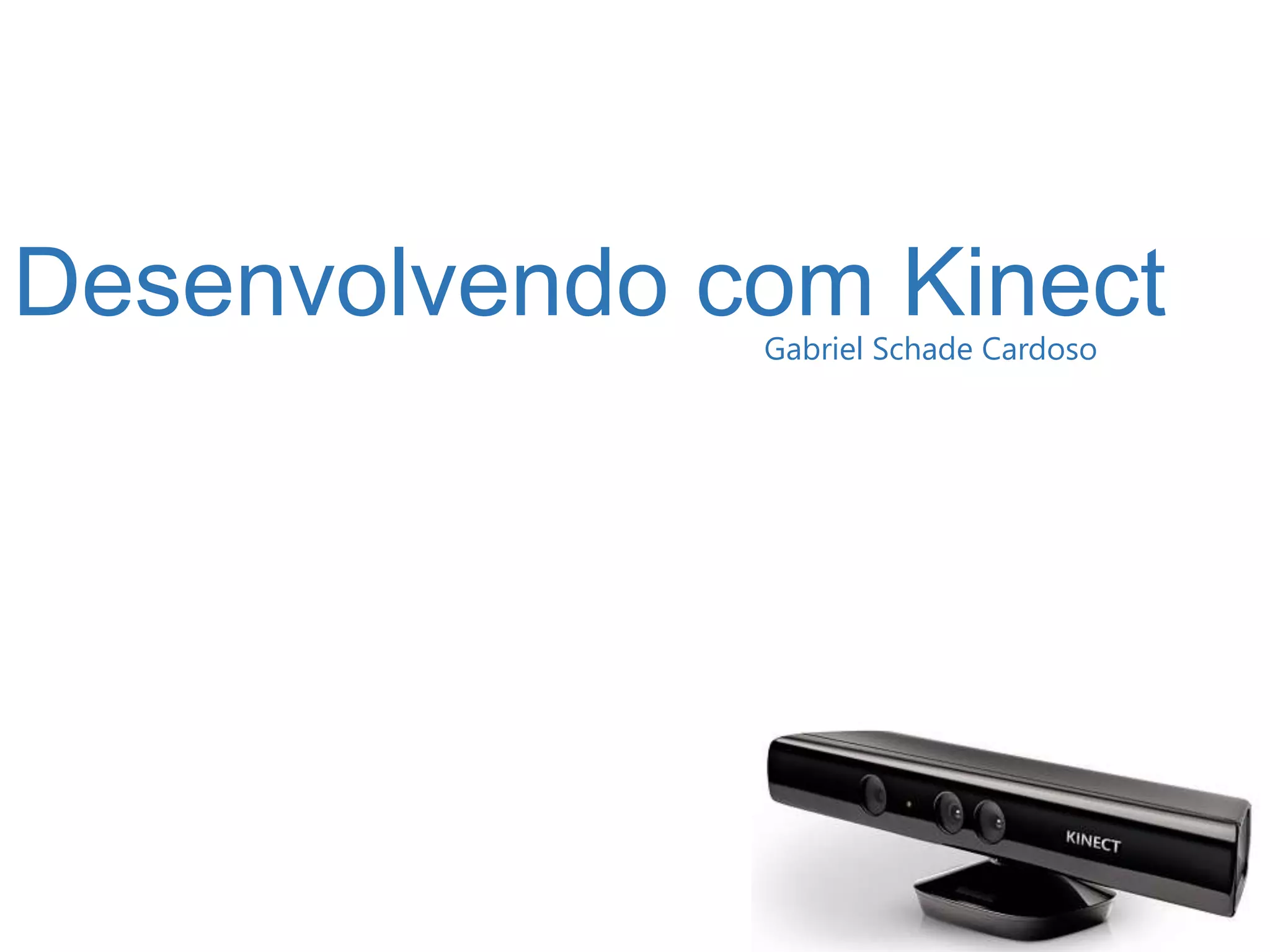 Gabriel Schade Cardoso é um desenvolvedor .NET com experiência em interfaces naturais como o Kinect. O documento descreve as principais funcionalidades do Kinect SDK, incluindo captura de profundidade, reconhecimento de esqueletos, streams de áudio, cores e profundidade. Algoritmos como a lei dos cossenos e produto escalar são usados para detecção de poses e gestos.